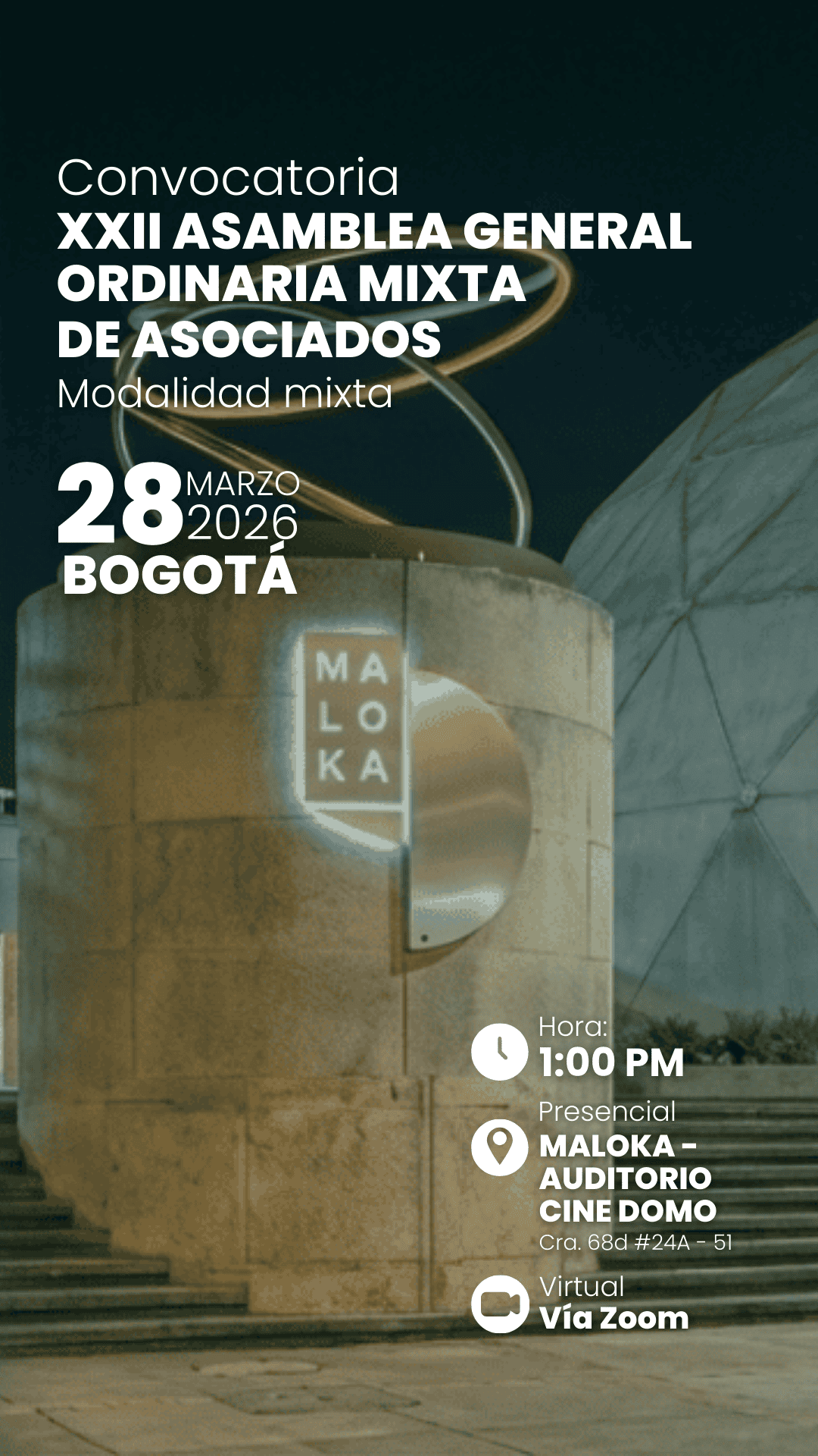 Importante contar con la disponibilidad horaria (7:00 pm a 9:00 pm) y conexión a internet.